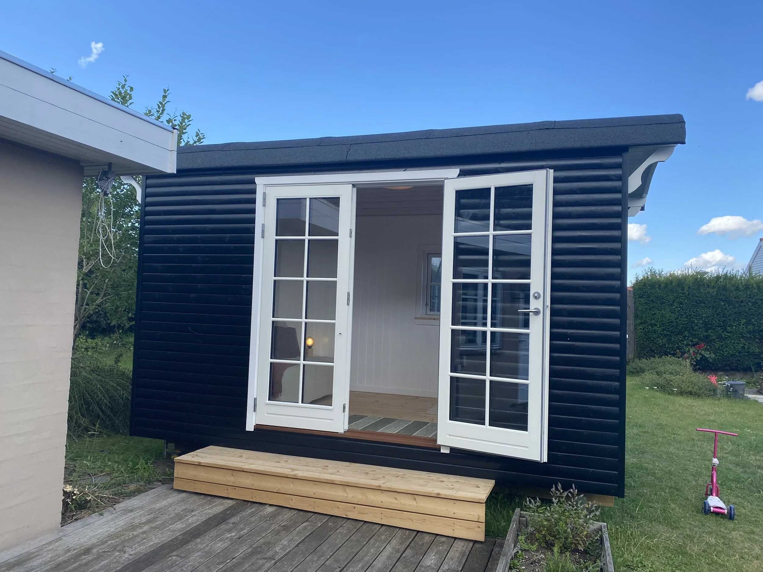Model Lillebo 10 m2 med dobbelt terrassedør på siden.